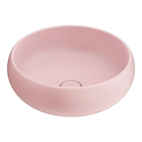 The modern curves of the Arezzo 360mm matt pink round counter top vessel basin with curved edge will make a bold visual statement in any bathroom. Made from high quality vitreous china, the basin is perfect for counter tops and is best complemented with a high rise basin mixer or wall mounted tap. Some small dimensional variation may occur due to manufacturing tolerances. Waste not included.