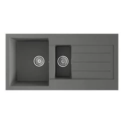 Venice 1.5 Bowl Matt Grey Composite Kitchen Sink + Chrome Wastes