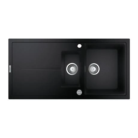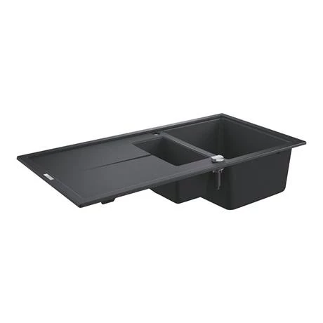 The K400 kitchen sink with drainer is both beautiful and highly functional. Made from 80% quartz / 20% acrylic resin and hardener composite material that will resist stains, scratches, heat and dents. GROHE Whisper technology gives the composite construction excellent noise-reduction qualities under running water. The GROHE QuickFix system comes with 2 holes pre-punched making installation quick and straightforward.Â