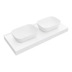 Arezzo Stone Resin Floating Basin Shelf incl. 2 Curved Rectangular Basins – 1200mm Wide