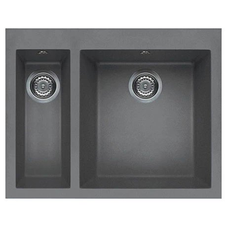 The Reginox Quadra sink collection succeeds to highlight its modern and clean shapes due to its simple and minimalist design. Made from a combination of granite and synthetic resin, the material is very hygienic, easy to clean and maintain, meaning that they will look better for much longer than some other materials. This 1.5 bowl sink in titanium is for inset mounting only and comes supplied with chrome basket strainer wastes.Â