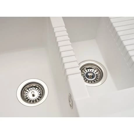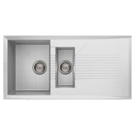 Reginox Tekno granite kitchen sinks are stylish and practical. Made from a combination of granite and synthetic resin, the material is very hygienic, easy to clean and maintain, meaning that they will look better for much longer than some other materials. This 1.5 bowl sink in White is fully reversible and comes supplied with chrome basket strainer wastes.