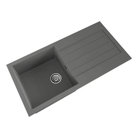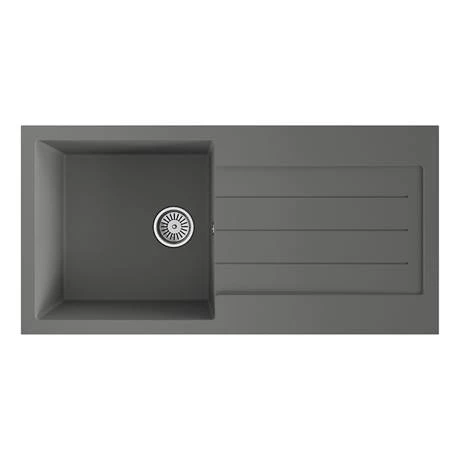 The Venice composite kitchen sink range are constructed from pressed material that is stain, scratch and impact resistant as well as being antibacterial. The sinks can withstand high heat temperatures and are easy to maintain and clean. This 1.0 bowl sink comes in a smooth matt grey finish and is fully reversible so the drainer can be on the left or right. Comes supplied with a chrome basket strainer waste.Â