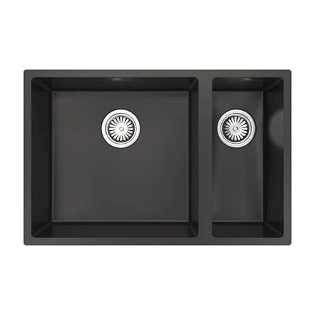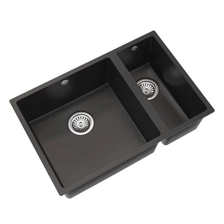 The Venice composite kitchen sink range are constructed from pressed material that is stain, scratch and impact resistant as well as being antibacterial. The sinks can withstand high heat temperatures and are easy to maintain and clean. This 1.5 bowl sink comes in a smooth matt black finish and is fully reversible so the drainer can be on the left or right.Â